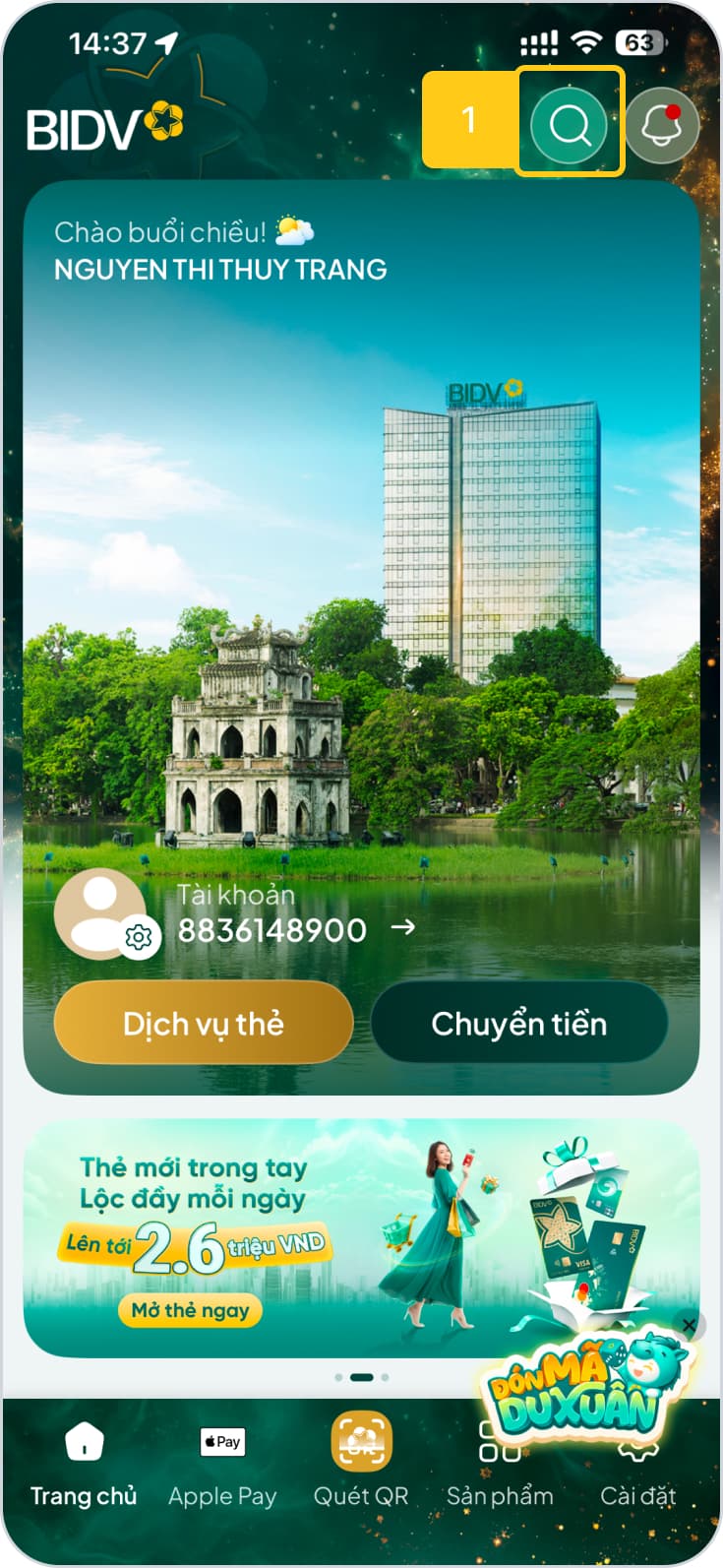 Qua ứng dụng Ngân hàng